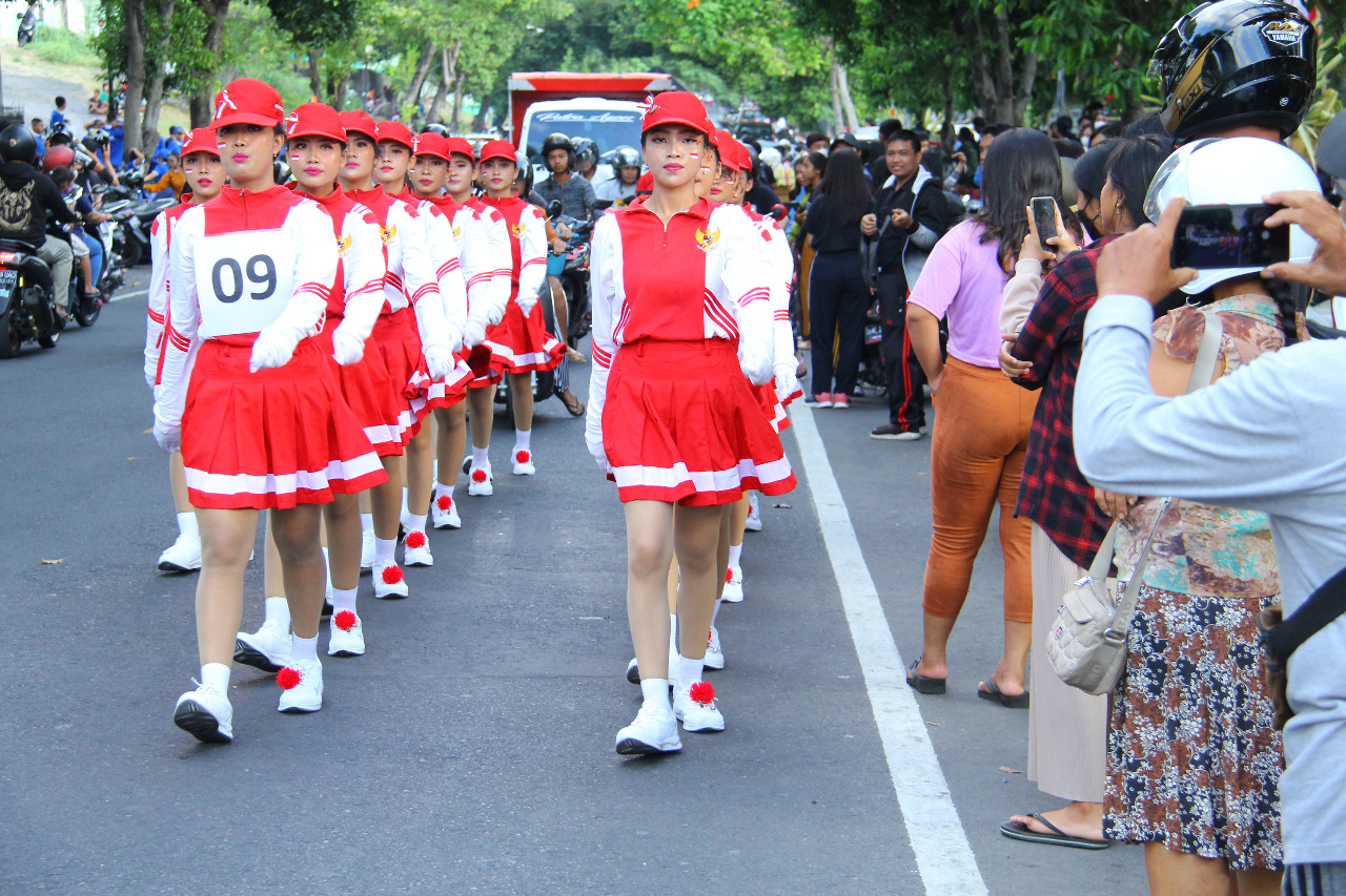 SINGARAJA, The East Indonesia – Sebanyak 40 regu mengikuti Lomba Gerak Jalan 17 KM Dewasa Putri, Rabu (10/8) kemarin. Seluruh regu merupakan siswa SMA/SMK dan Perguruan Tinggi (PT) itu, dilepas di garis start depan GOR Bhuana Patra Singaraja. Suporter yang nampak tumpah ruah di jalan diingatkan kembali oleh Panitia agar tidak mengganggu barisan dan membuat keributan selama pelaksanaan lomba.