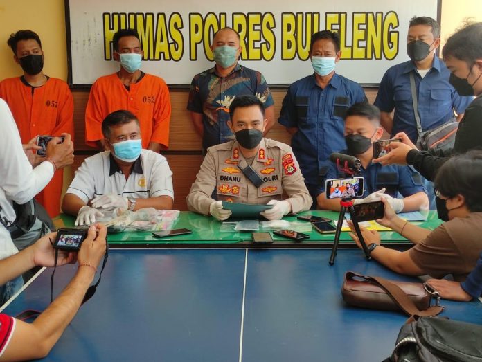 Kapolres Buleleng, AKBP Made Dhanuardana pada Kamis (11/8) mengatakan, tiga tersangka yang berhasil ditangkap masing-masing bernama Labibul Asrori (24), Gede Pasek Sujaya alias Alex (45) serta Wawan Efendi alias Iwan (33). Ketiganya ditangkap dari hasil operasi yang dilakukan oleh Satnarkoba Polres Buleleng sejak Juli kemarin.