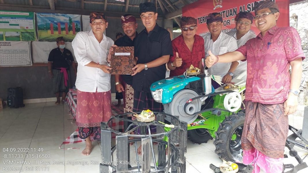 SINGARAJA, The East Indonesia – Ketua DPRD Buleleng Gede Supriatna, SH bersama anggota Dewa Gede Sugiarto menghadiri penyerahan bantuan 1 unit traktor kepada subak Layahan di pura subak Ulunsui Desa Jagaraga Kecamatan Sawan, Minggu (4/9).