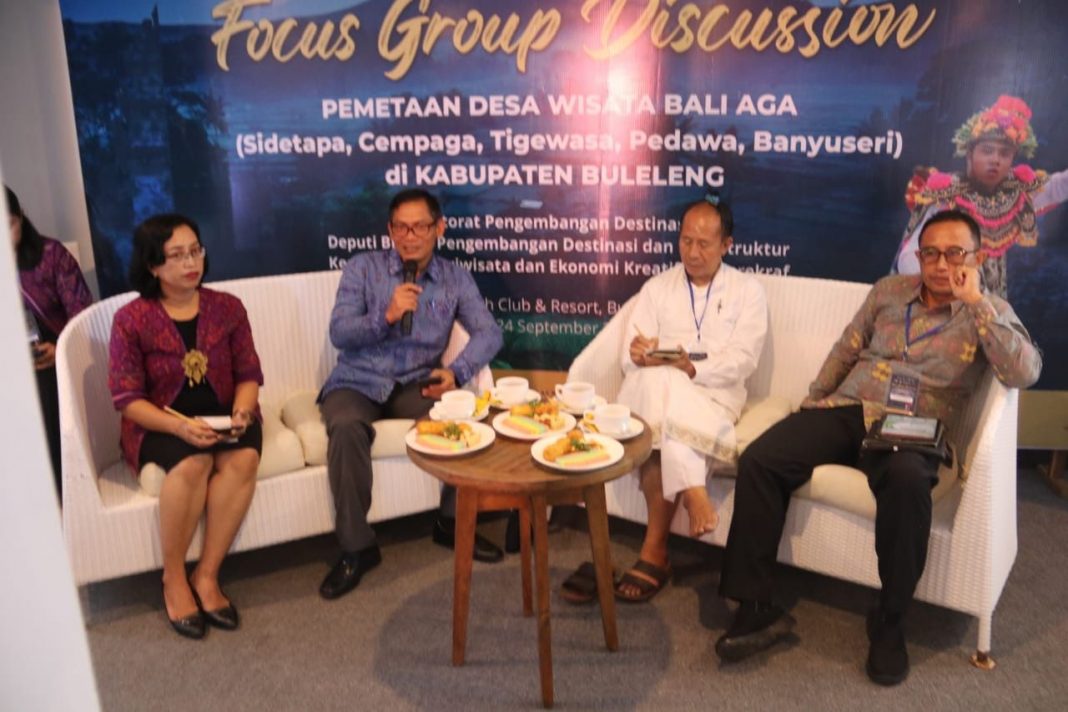 SINGARAJA, The East Indonesia – Guna memperkuat pengembangan desa wisata (Dewi) Bali Aga yaitu Desa Sidatapa, Cempaga, Tigawasa, Pedawa, Banyuseri Kecamatan Banjar di Kabupaten Buleleng, Pemerintah Pusat melalui Kementerian Pariwasata dan Ekonomi Kreatif bersinergi dengan Pemerintah Daerah dan stake holder terkait, menyelenggarakan Focus Group Discussion (FGD) di Lovina Beach dan Resort.