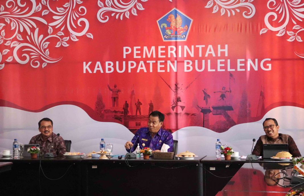 Penjabat (PJ) Bupati Buleleng Ketut Lihadnyana saat memimpin rapat koordinasi pembahasan rencana penenggelaman kapal perang eks TNI AL KRI Ki Hajar Dewantara-364 di ruang rapat Lobi Kantor Bupati Buleleng, Selasa (27/9/2022). Foto : Ist