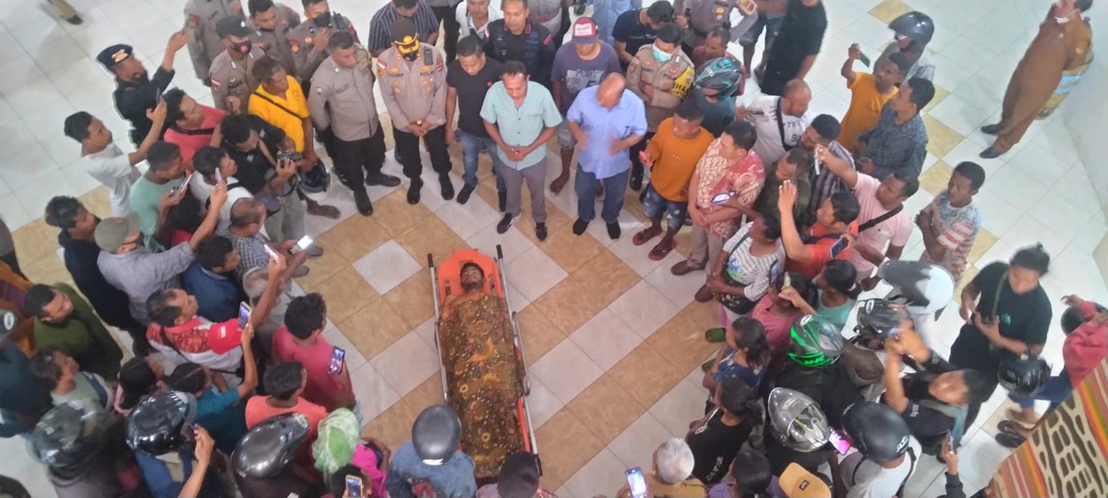 Meski sudah dibaringkan di Kamar jenazah Rumah Sakit Umum Daerah Mgr Gabriel Manek SVD Atambua, jasad Eton diambil dan dipikul oleh keluarga besarnya ke Mapolres Belu, Selasa siang (27/09/2022).