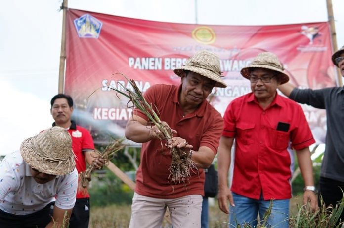 “Kita sering melihat tatkala produksi berhasil belum tentu petani tersenyum. Panennya sudah berhasil namun harganya turun. Sehingga sekarang ini bagaimana membuat petani berhasil meningkatkan produksi, tetapi hasil panennya langsung dibeli,” ujar Lihadnyana usai memimpin jajaran Pemerintah Kabupaten (Pemkab) Buleleng melakukan panen bawang putih varietas lumbu hijau hasil bantuan dari Kementerian Pertanian Republik Indonesia, di Desa Gobleg, Kecamatan Banjar, Minggu (2/10) pagi.