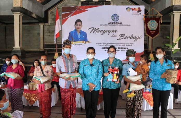 TABANAN, The East Indonesia – Bagi masyarakat Bali, Kabupaten Tabanan dan Jembrana memang berduka akibat banjir bandang melanda sejumlah kawasan di daerahnya. Meski demikian Ketua TP PKK Kabupaten Tabanan Ny. Rai Wahyuni Sanjaya cepat tanggap. Mendampingi Ketua TP PKK Provinsi Bali Ny. Putri Suastini Koster, Ketua TP PKK Kabupaten Tabanan Ny. Rai Wahyuni Sanjaya turun “Menyapa dan Berbagi” dengan masyarakat yang terdampak bencana alam di Desa Abiantuwung, Kediri dan di Banjar Uma Diwang, Belayu, Marga, Tabanan, Rabu (19/10) pagi.