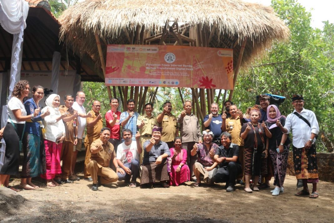 SINGARAJA, The East Indonesia – Kesenjangan digitalisasi wilayah perkotaan dengan pedesaan masih terjadi di Kabupaten Buleleng, pembangunan infrastruktur jaringan internet sangat diperlukan. Dengan pembangunan tower internet berbahan bambu di Desa Tembok dapat meningkatkan digitalisasi, peningkatan layanan kesehatan, pendidikan, jaring pemasaran UMKM serta layanan publik pemerintah. Demikian diharapan Asisten Administrasi Umum Setda Buleleng Ir. Nyoman Genep, M.T mewakili Penjabat Bupati Buleleng usai meresmikan Tower Internet berbahan bambu di Banjar Dinas Sembung, Desa Tembok, Senin (24/10).