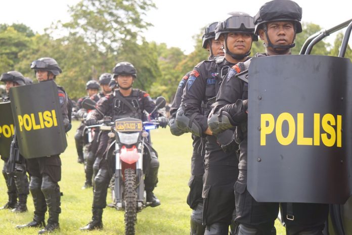 DENPASAR, The East Indonesia – Pasukan penanggulangan huru hara (PHH) dari Korps Brimob Polri dan Pasukan Dalmas BKO Baharkam Mabes Polri melaksanakan kegiatan simulasi PHH di Lapangan Niti Mandala Renon, Denpasar, Sabtu (5/11/2022).