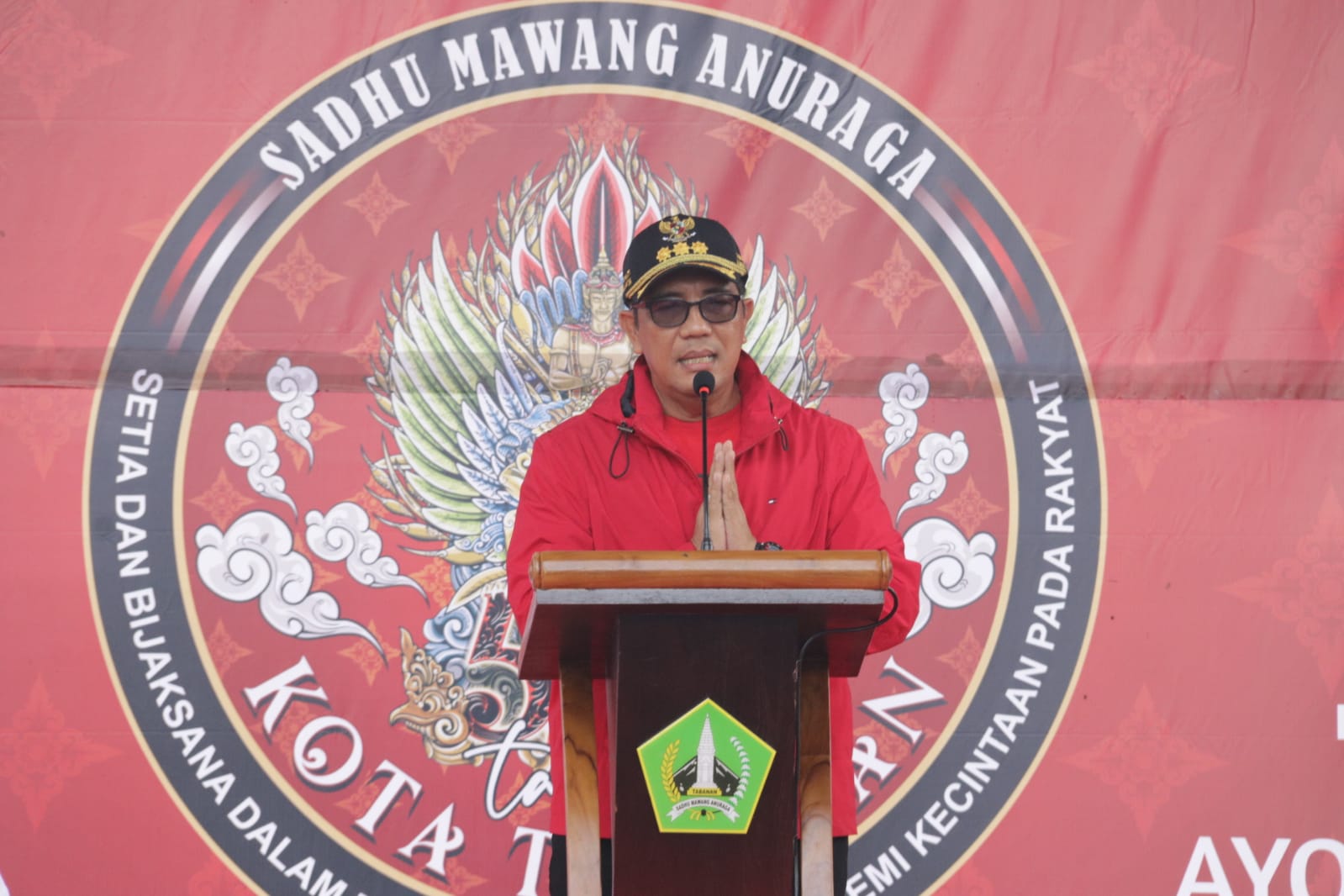 TABANAN, The East Indonesia – Sorak sorai ribuan Masyarakat Tabanan dalam seremonial menyambut Pembukaan Perayaan HUT Ke-529 Kota Tabanan yang dibuka oleh Bupati Tabanan, Dr. I Komang Gede Sanjaya, S.E.,M.M. sekaligus dirangkaikan dengan Pelepasan Kontingen Atlet Porprov Bali Kabupaten Tabanan Tahun 2022 dan Pencanangan Car Free Day serta Penyerahan Hadiah Utama Gebyar PBB di Kabupaten Tabanan, Minggu (6/11).