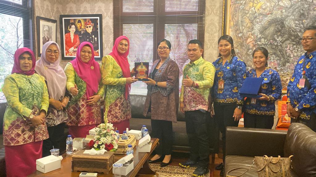 TABANAN, The East Indonesia – Upaya Ny. Rai Wahyuni Sanjaya, S.H.,M.M selaku Ketua Dekranasda Kabupaten Tabanan dalam memperkenalkan dan membangkitkan IKM dan UMKM kerajinan khas Tabanan tak hentinya ditunjukkannya dalam berbagai moment. Khususnya pada hari ini, saat menerima kunjungan kerja dari Dekranasda Kabupaten Labuhanbatu Utara, Sumatera Utara, yang disambutnya di Rumah Jabatan Bupati Tabanan, Senin (19/12).