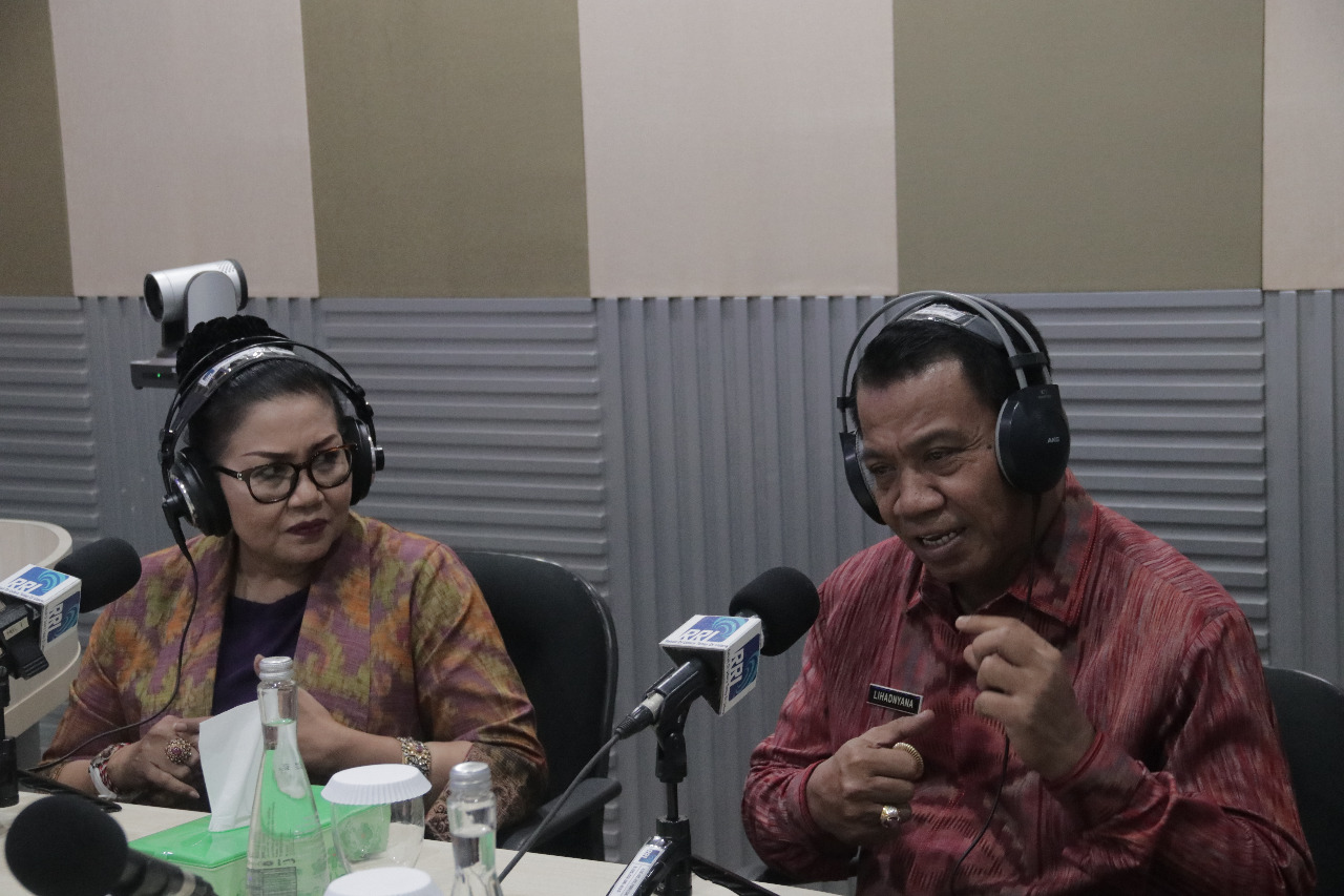 Penjabat (Pj) Bupati Buleleng, Ketut Lihadnyana bersama Ketua Tim Penggerak Pemberdayaan dan Kesejahteraan Keluarga (TP-PKK) Provinsi Bali, Ny. Putri Koster saat melakukan dialog interatif "Penanggulangan Rabies Berbasis Keluarga" di RRI Singaraja, Selasa (24/1). Foto : Ist