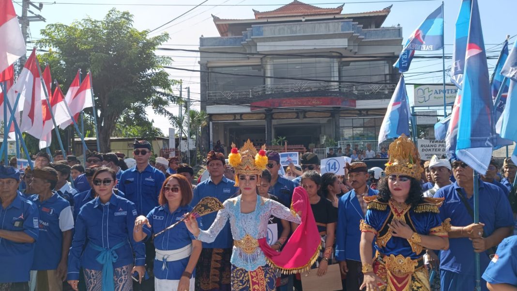 Pendaftaran Partai Demokrat Buleleng ke KPUD Buleleng dengan berjalan kaki diiringi tabuh beleganjur. Selain itu di depan Sekretariat KPUD Buleleng, Partai Demokrat juga mementaskan fragmen Goak-goakan sebelum pendaftaran. Pengurus Partai diterima Ketua KPUD Buleleng, Komang Dudhi Udiyana.