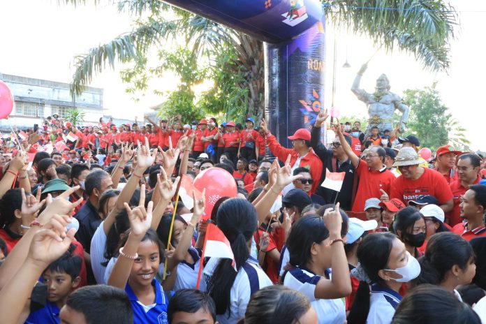 TABANAN, The East Indonesia – Puluhan ribu masyarakat Tabanan dari lintas generasi, seperti anak – anak, milenial, dewasa, hingga lansia dengan antusias hadir memerahkan Pre-Event Creative Fun Walk Bali Digital Festival 2023 yang dihadiri oleh Gubernur Bali, Wayan Koster di Taman Bung Karno, Kota Tabanan pada, Minggu (Redite Wage, Landep) 28 Mei 2023.