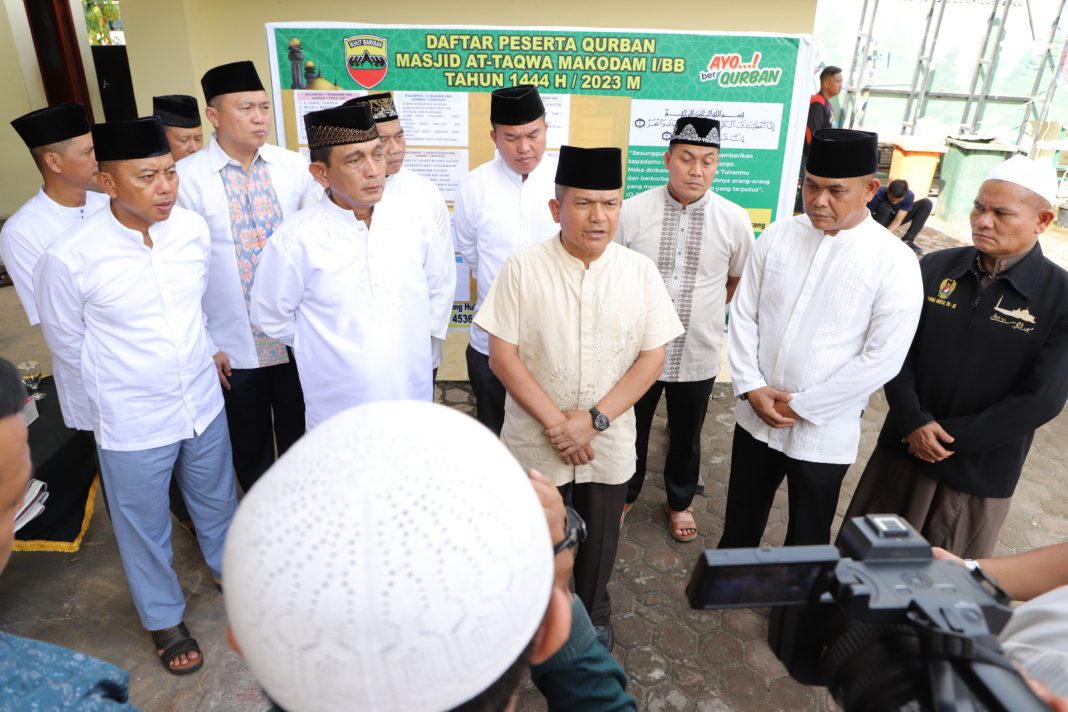 Turut hadir dalam pelaksanaan salat Idul Adha dan penyembelihan hewan qurban, antara lain Kasdam I/BB, Brigjen TNI Refrizal, para Asisten Kasdam I/BB, para Kabalakdam I/BB, para panitia Qurban dan para peserta Qurban.**