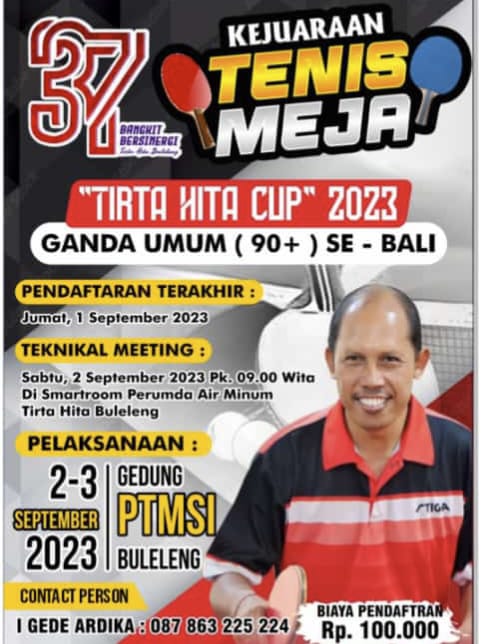 SINGARAJA, The East Indonesia – Bagi pecinta hobby tenis meja di Bali yang saat ini berusia diatas 40 tahun, tidak ada salahnya mengikuti kejuaraan tenis meja “Tirta Hita Cup” 2023. Kejuaraan ini akan diselenggarakan pada tanggal 2 dan 3 Sepetember mendatang di Gedung PTMSI Buleleng.