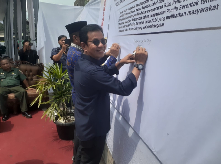 Deklarasi kampung pengawasan pemilu ini diresmikan secara langsung oleh Walikota Padang yang diwakili oleh Kepala Kantor Kesbangpol Kota Padang dengan pemukulan gong dan dilanjutakan penandatanganan kesepakatan bersama deklarasi kampung pengawasan pemilu , turut hadir dalam deklarasi ini ketua DPRD kota padang, komisioner KPU kota padang , Forkopinka kecamatan lubuk kilangan perwakilam parpol.*** ( H)