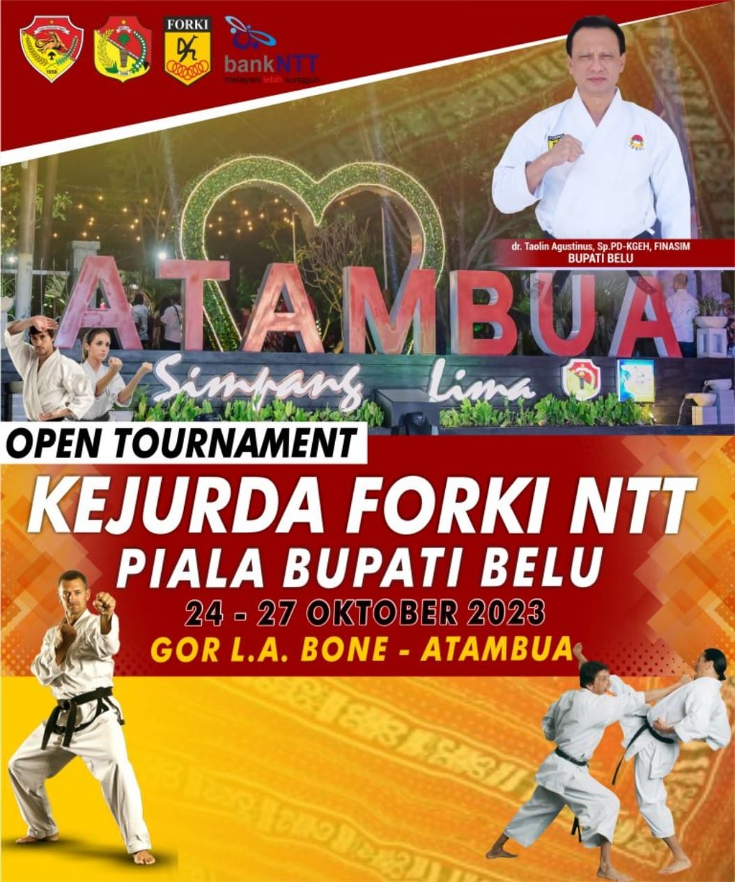 Gelaran Open Turnamen Kejurda Forki NTT ini dibuka secara resmi oleh Bupati Belu, dr. Augustinus Taolin, SpPD-KGEH, FINASIM yang berlangsung di GOR L. A. Bone Atambua, Selasa (24/10/2023).