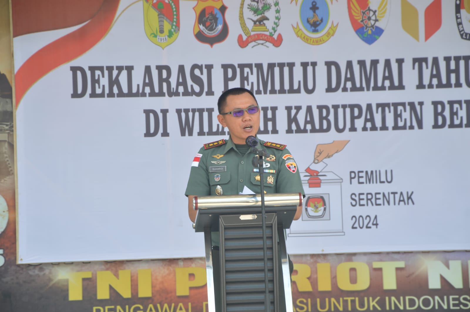 Hal ini ditekankan Dandim 1605/Belu, Letkol Arh Suhardi, ST dalam kegiatan Deklarasi Pemilu Damai Tahun 2024 di wilayah Kabupaten Belu yang digelar oleh Kodim 1605/Belu di Lapangan upacara Makodim 1605/Belu, pada Selasa pagi, 14 November 2023.