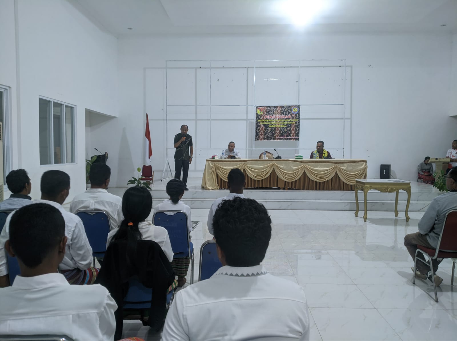 Pengukuhan pengurus IKA PPNK Kabupaten Belu periode 2023-2028 yang dilaksanakan di Gedung Wanita Betelalenok Atambua ini dilakukan oleh Wakil Direktur Bidang Kemahasiswaan Politeknik Pertanian Negeri Kupang, Fabianus Ranta, S.Hut, M.Si dan disaksikan langsung oleh Wakil Bupati Belu, Dr. Drs. Aloysius Haleserens, MM serta dihadiri pimpinan OPD terkait dan turut hadir pula Dosen Jurusan Tanaman Pangan dan Hortikultura Politeknik Pertanian Negeri Kupang, Dr. Laurensius Lehar, S.P, M.P.