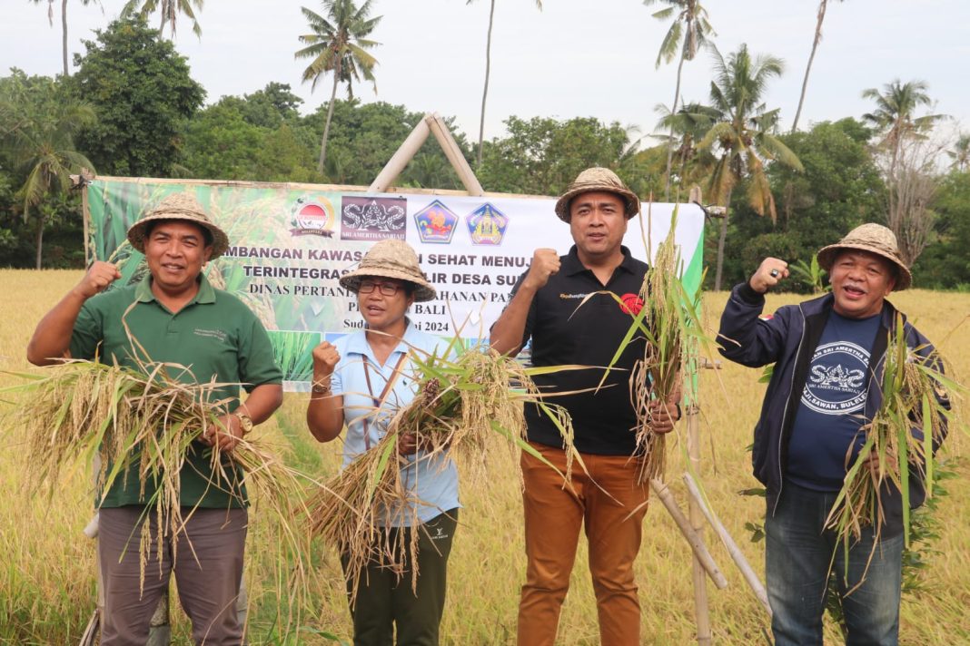 SINGARAJA, The East Indonesia – Kelompok Tani Sri Amerta Sari Aji yang menaungi Subak Getih Dusun Bantas, Desa Sudaji, Kecamatan Sawan, diharapkan menjadi pionir dalam pengembangan kawasan padi sehat menuju organik. Dalam kegiatan panen perdana hari ini , Jumat (7/6) di kawasan demplot dengan luas area sekitar 0,75 hektar tersebut berhasil menghasilkan gabah signifikan dari uji ubin yang telah dilakukan.