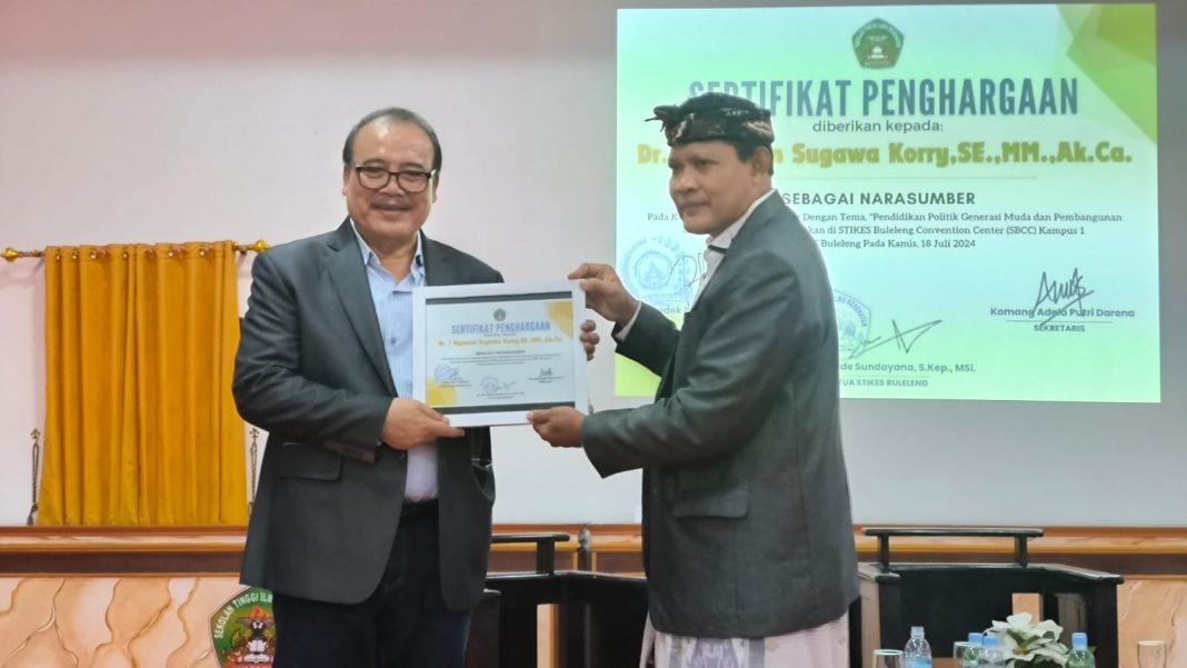SINGARAJA, The East Indonnesia – Bakal Calon Bupati dari Partai Golkar, Nyoman Sugawa Korry meminang Ketua STIKES Buleleng, Made Sundayana untuk menjadi wakilnya dalam perhelatan Pemilukada tanggal 27 November mendatang. Sugawa meminang Sundayana ketika acara Pendidikan Politik yang dilaksanakan di Kampus STIKES Buleleng Kampus Bungkulan, Kamis (18/7).