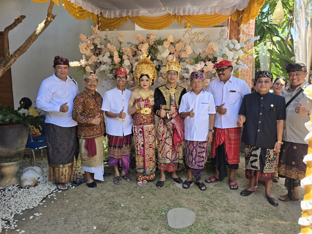 BULELENG, The East Indonesia – Ketua DPD PDI Perjuangan Bali Wayan Koster menghadiri acara pernikahan tokoh politisi Partai Demokrat Buleleng I Komang Nova Sewi Putra dengan Raden Ajeng Ayu Citra Resminingrum di Buleleng pada Jumat (13/9/2024).