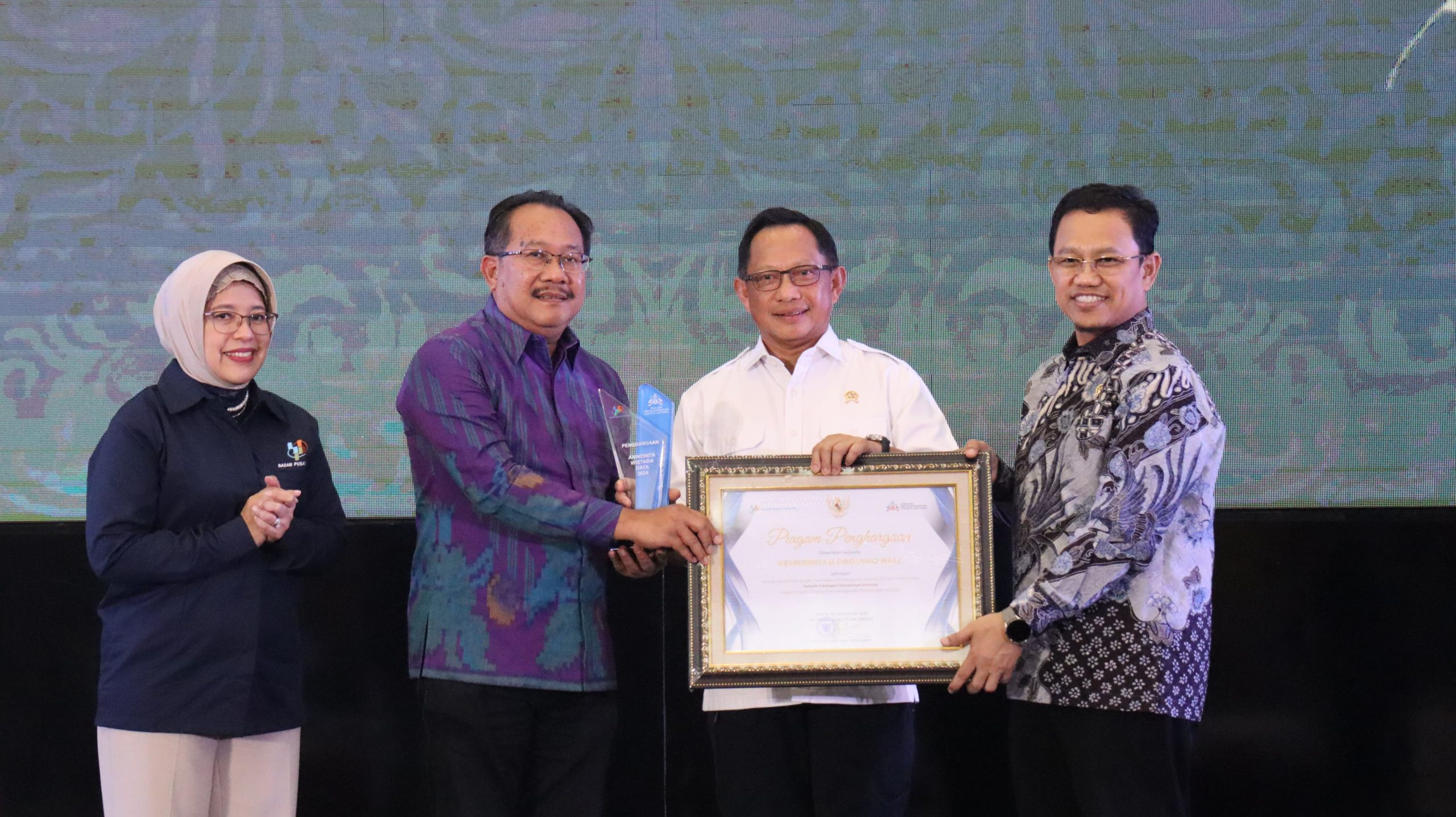 Penghargaan diserahkan langsung oleh Menteri Dalam Negeri Tito Karnavian, didampingi oleh Wakil Ketua Komisi XI DPR RI, Amir Uskara, dan Plt Kepala BPS, Amalia Adininggar Widyasanti. Hadir mewakili Pj Gubernur Mahendra Jaya, Kepala Dinas Komunikasi, Informatika, dan Statistik Provinsi Bali, Gede Pramana.