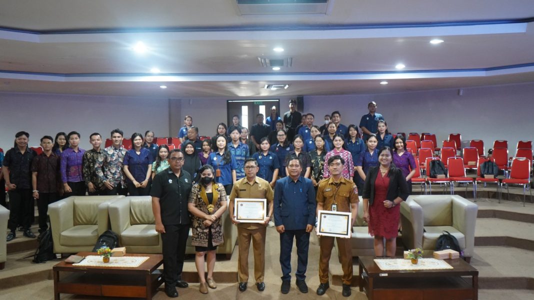 SINGARAJA, The East Indonesia – Kepala Dinas Komunikasi, Informatika, Persandian dan Statistik (Kominfosanti) Kabupaten Buleleng, Ketut Suwarmawan bersama Kasubag Protokol Setda Kabupaten Buleleng, Made Agtya Kusumayudha memberikan pelatihan kehumasan dan protokol kepada mahasiswa Universitas Pendidikan Ganesha (Undiksha) Singaraja, Senin, (7/10).