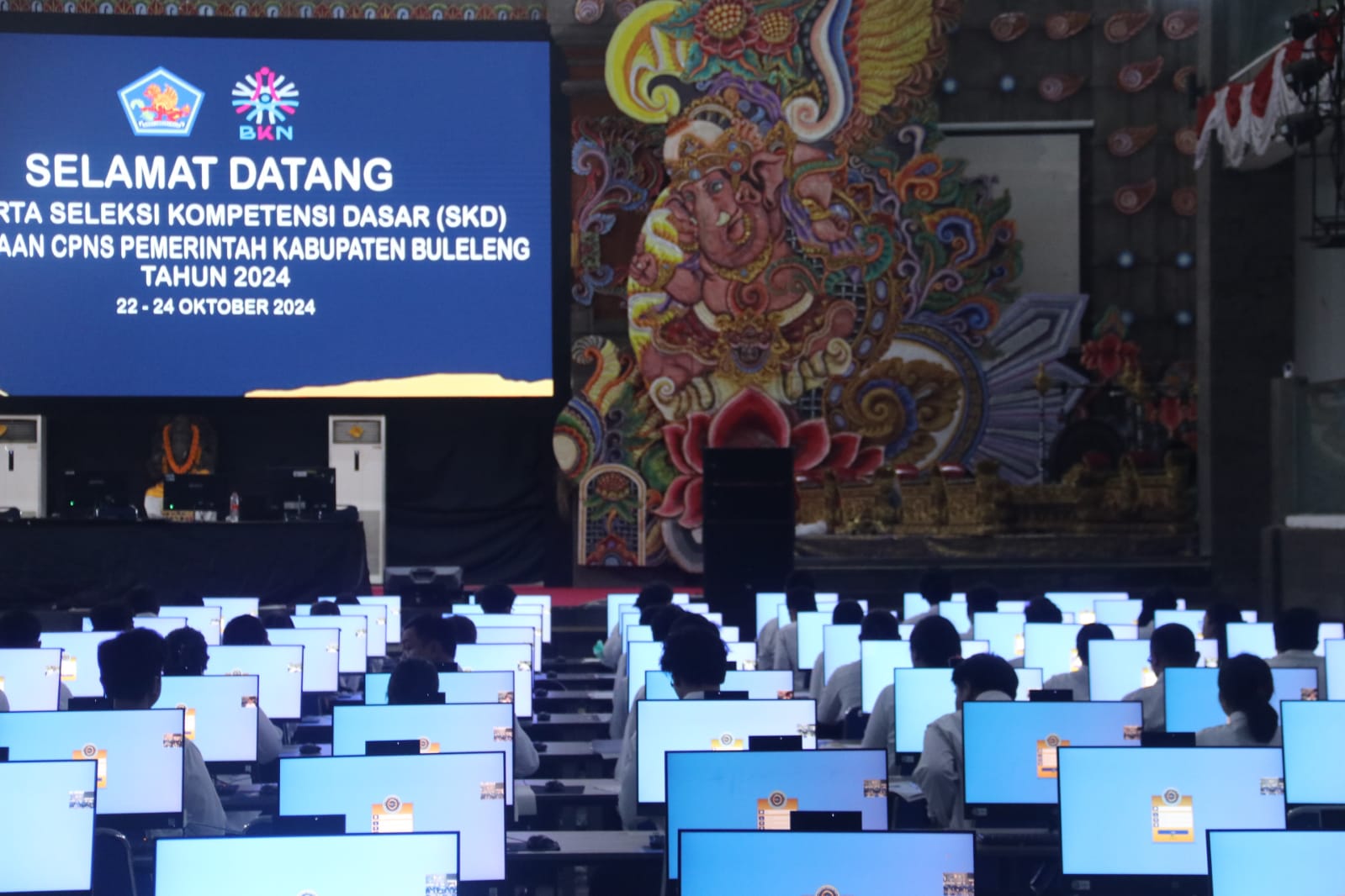 SINGARAJA, The East Indonesia – Kepala Kantor Regional X Badan Kepegawaian Negara (BKN), Dr. Yudhantoro Bayu Wiratmoko, didampingi Penjabat Bupati Buleleng, Ketut Lihadnyana, meninjau langsung pelaksanaan Seleksi Kompetensi Dasar (SKD) CPNS di Kabupaten Buleleng pada hari pertama di Auditorium Undiksha Singaraja. Kunjungan ini dilakukan untuk memastikan kelancaran dan kesiapan fasilitas selama proses seleksi yang akan berlangsung dari 22 hingga 24 Oktober 2024.