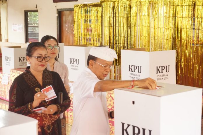 SINGARAJA, The East Indonesia – Cagub Bali Nomor 2 Wayan Koster (Paket Koster-Giri) bersama keluarga besar mencoblos di Desa Sembiran Tejakula Buleleng, pada Pilkada Serentak Rabu 27 November 2024 pagi.