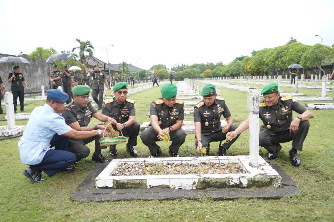 TABANAN, The East Indonesia – Dalam rangka memperingati Hari Juang TNI AD ke 79 tahun 2024, Kodam IX/Udayana melaksanakan kegiatan Ziarah Rombongan yang dipimpin langsung oleh Pangdam IX/Udayana Mayjen TNI Muhammad Zamroni, S.I.P, M.Si., didampingi Ketua Persit PD IX/Udayana Ny. Dessy Muhammad Zamroni bertempat di Taman Makam Pahlawan (TMP) Pancaka Tirta Tabanan, Banjar Taman Sari, Desa Delod Peken, Kecamatan Tabanan, Kabupaten Tabanan, pada Kamis (12/12/2024).