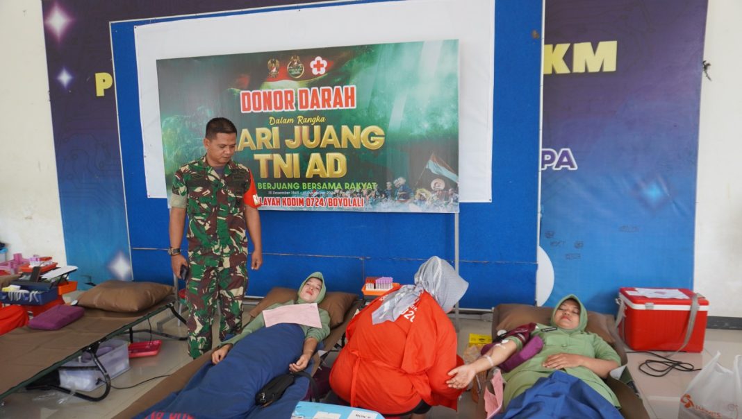 BOYOLALI, The East Indonesia – Komando Distrik Militer (Kodim) 0724/Boyolali menggelar bakti sosial donor darah dalam rangka rangkaian kegiatan peringatan Hari Juang TNI-AD, bertempat di Aula Balai Desa Tawangsari Kecamatan Teras Kabupaten Boyolali. Minggu ( 15/12/24)