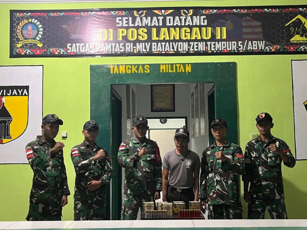 KAPUAS HULU, The East Indonesia – Tingkatkan stabilitas keamanan wilayah perbatasan, Satgas Pamtas RI-Malaysia Yonzipur 5/ABW telah berhasil melakukan penangkapan terhadap satu orang warga yang membawa munisi Tabur Kaliber 12,70 mm merk Alphamax + Magnum sebanyak 3 dus dan Megastar sebanyak 3 dus dengan jumlah munisi sebanyak 150 butir, di Sungai Antu, Kecamatan Puring Kencana, Kabupaten Kapuas hulu, Sabtu (28/12/2024).