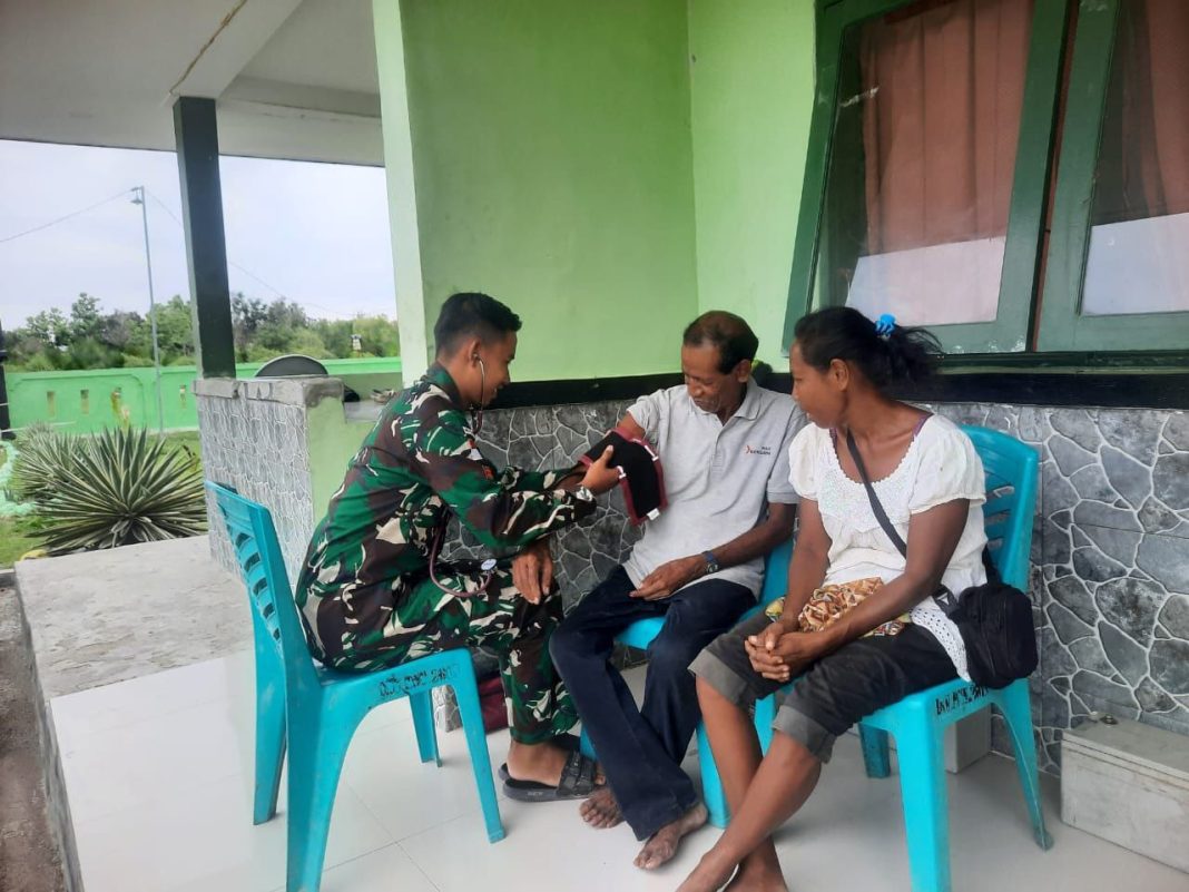 KUPANG, The East Indonesia – Dalam rangka mendukung kesehatan masyarakat di wilayah perbatasan, Personel Kesehatan Satgas Pamtas RI-RDTL Sektor Barat Yonarhanud 15/DBY dari Pos Oepoli Tengah, Pratu Himawan, melaksanakan kegiatan pelayanan kesehatan kepada warga di Desa Netemnanu Utara, Kecamatan Amfoang Timur, Kabupaten Kupang, pada Selasa (31/12/2024).