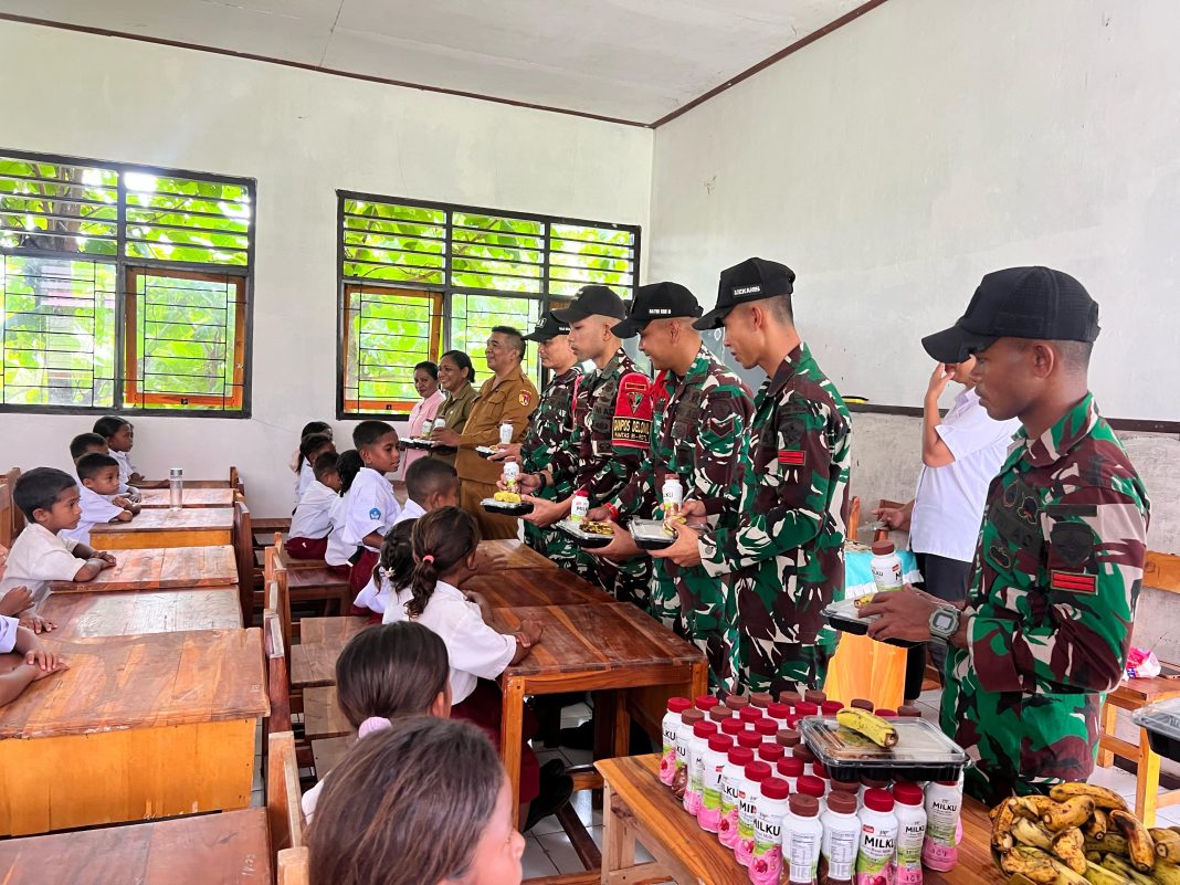 Dukung Program Nasional, Satgas Yonif 741/GN Pos Delomil Gelar Makan Bergizi Gratis di Batas RI-RDTL