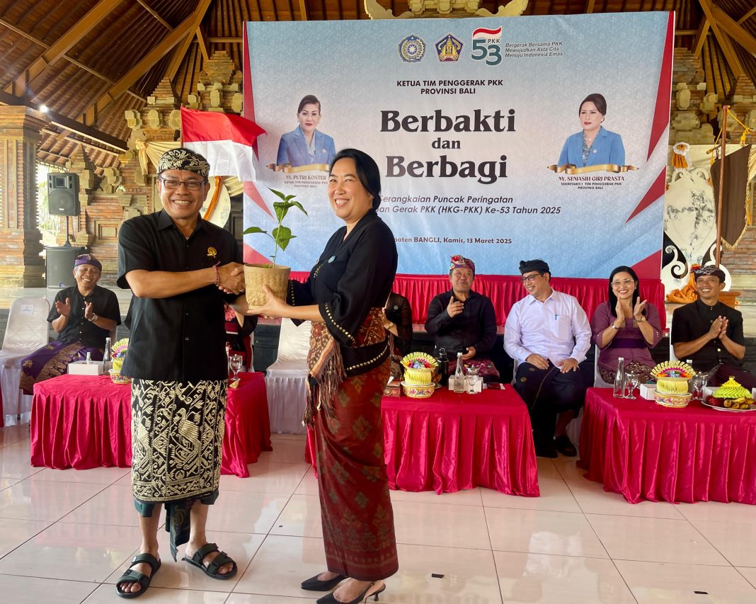 “Saya ingin mengajak seluruh jajaran Tim Penggerak PKK Kabupaten Bangli untuk selalu peduli terhadap kondisi di sekitar kita. Apabila memiliki rezeki lebih, mari kita tumbuhkan kembali semangat berbagi kepada keluarga dan masyarakat yang membutuhkan,” tuturnya.