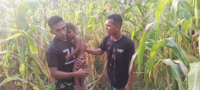 MALAKA, The East Indonesia – Satuan tugas (Satgas) Pengamanan Perbatasan (Pamtas) Negara RI-RDTL Sektor Timur, Yonif 741/ Garuda Nusantara (GN) Pos Haslot berhasil temukan anak hilang di hutan perbatasan RI-RDTL Dusun Motamasin, Desa Alas Selatan, Kecamatan Kobalima Timur, Kabupaten Malaka, Senin (24/03/2025).