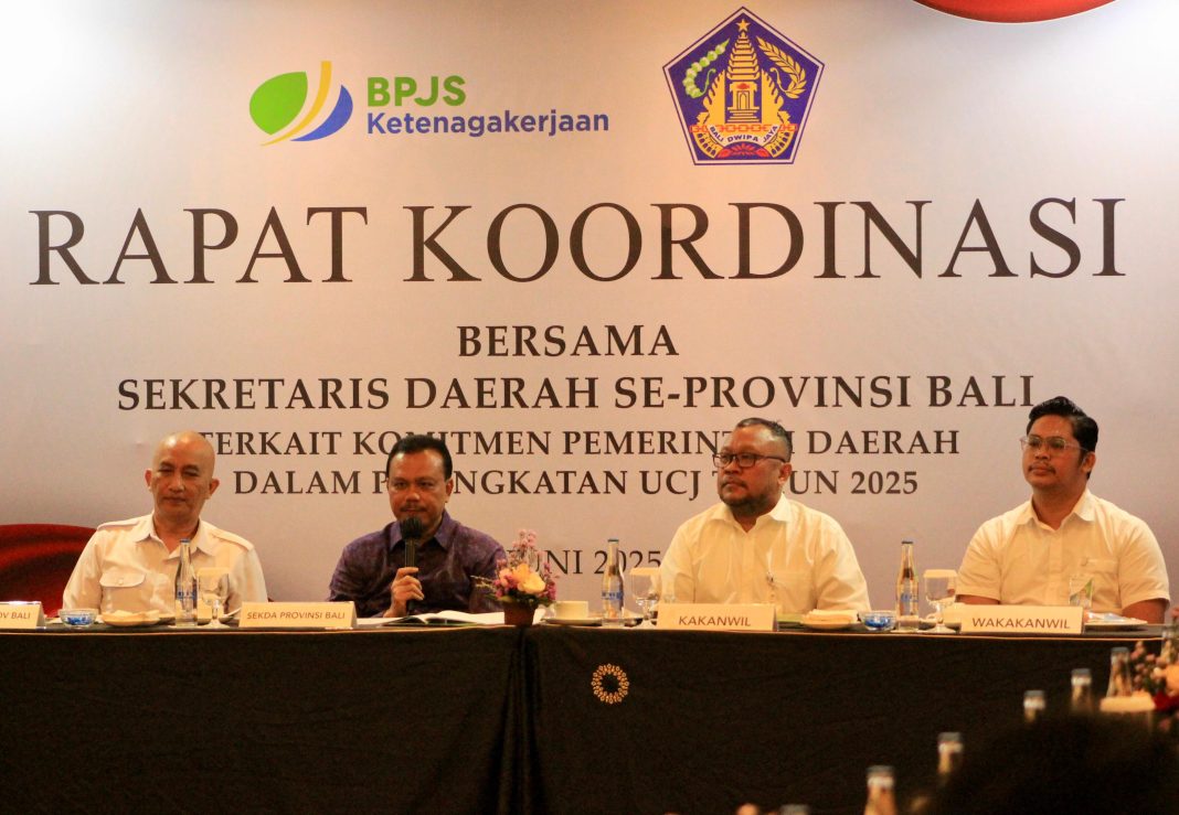 DENPASAR, The East Indonesia – Sekretaris Daerah Provinsi Bali, Dewa Made Indra, memimpin rapat koordinasi bersama Sekretaris Daerah se-Provinsi Bali untuk membahas komitmen Pemerintah Daerah dalam peningkatan Universal Coverage Jaminan Sosial Ketenagakerjaan (UCJ) Tahun 2025. Acara berlangsung di Four Star by Trans Hotel, Rabu (4/6).