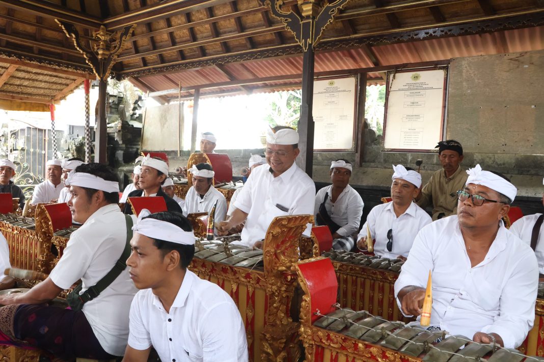 Bertempat di Pura Merajan Kanginan, Gubernur asal Desa Sembiran, Buleleng ini tidak hanya hadir untuk persembahyangan, tetapi juga secara aktif terlibat dalam megambel (menabuh gamelan) bersama para pemedek. Tarian sakral Topeng Sidakarya yang dipentaskan di Jaba Pura pun semakin hidup dengan alunan gamelan yang dipimpin langsung oleh orang nomor satu di Bali tersebut.