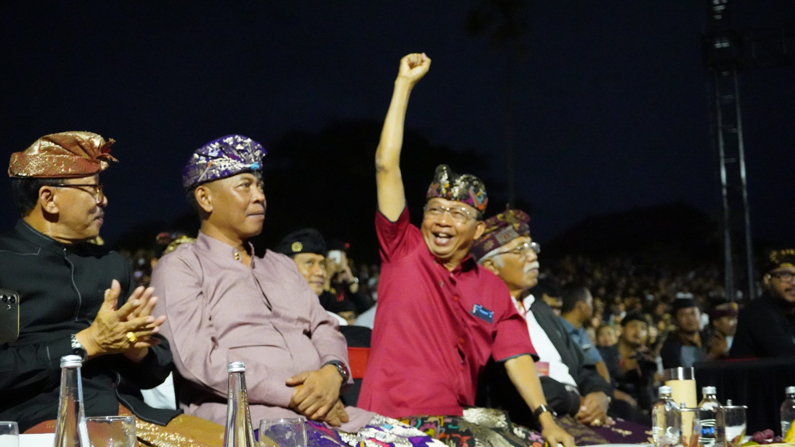 Setibanya di panggung terbuka Ardha Candra, Gubernur Bali Wayan Koster disambut riuh penonton yang hampir seluruhnya anak muda.