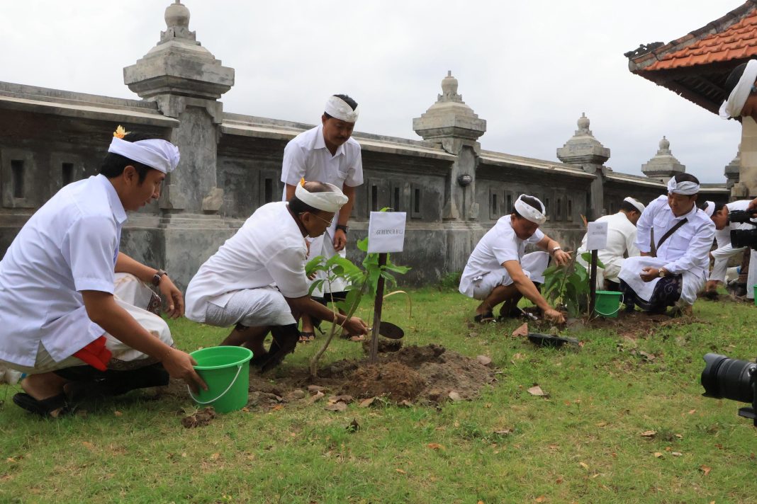 Penanaman pohon dilakukan di dalam area Pura Sakenan, dengan jenis pohon yang ditanam meliputi bibit cempaka, sawo kecik, nagasari, matoa, dan nyamplung. Kelima jenis pohon ini dipilih karena memiliki nilai ekologis tinggi serta makna simbolik dalam budaya Bali sebagai lambang kesucian, perlindungan alam, dan keharmonisan lingkungan.