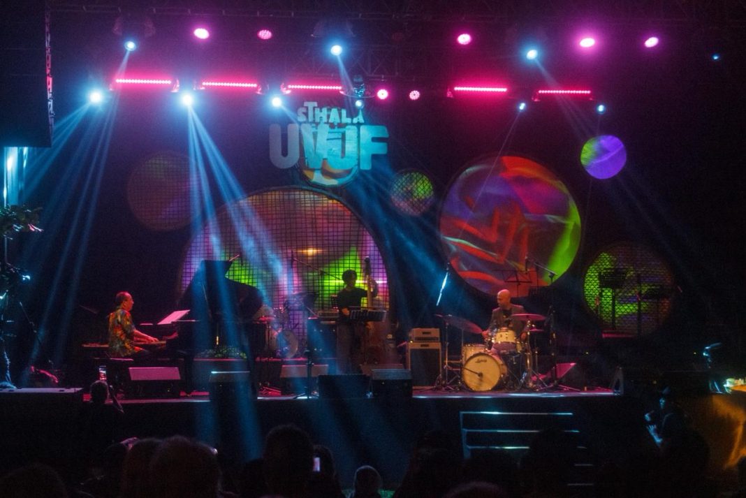 Tahun ini, tata panggung festival hanya menampilkan dua ruang utama: Giri Stage, panggung besar dengan dentuman big band dan harmoni berlapis, serta Subak Stage, yang terletak di tepi sungai, sebuah ruang kecil nan intim di mana suara musik berpadu dengan gemericik air, menciptakan pengalaman mendengarkan yang nyaris magis. Sthala UVJF 2025 tidak lagi tentang membagi massa ke banyak arah, melainkan mengajak semua penonton menyelam dalam musik, bersama, dalam satu napas kolektif.