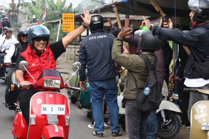 Pada kesempatan itu, Bupati Sanjaya hadir bersama Sekda Kabupaten Tabanan, sejumlah Kepala Perangkat Daerah, serta para tokoh komunitas Vespa mengendarai motor vespa dari Kantor Camat Baturiti menuju lokasi acara.