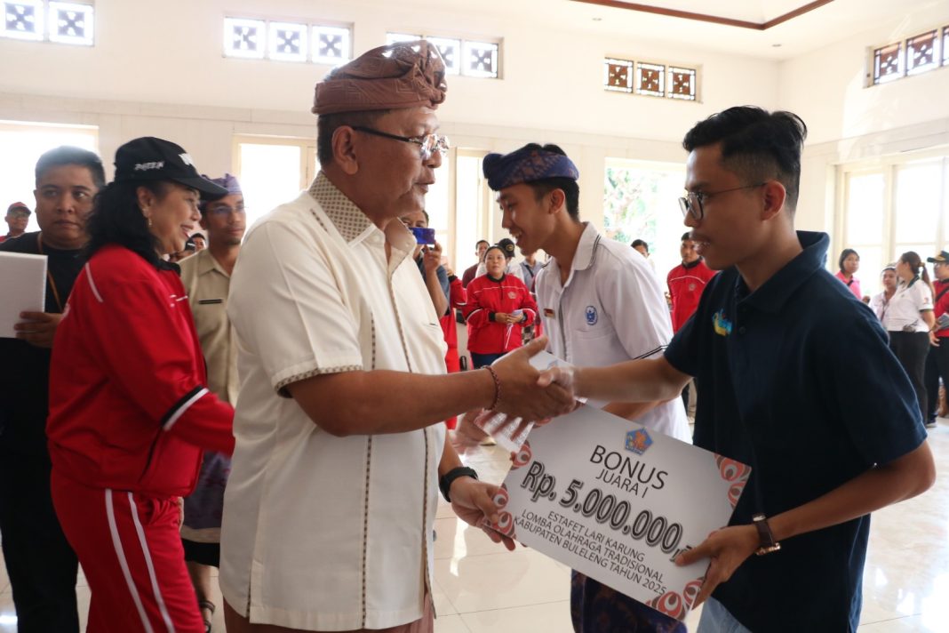 Penyerahan bonus juga dirangkaikan dengan penyerahan hadiah bagi pemenang lomba olahraga tradisional antar SKPD, seperti Estafet Lari Karung, Gebug Bantal, Tajog, dan Terompah Panjang, yang digelar untuk memupuk kecintaan terhadap daerah dan menyemarakkan HUT ke 421 Kota Singaraja.(Wismaya)