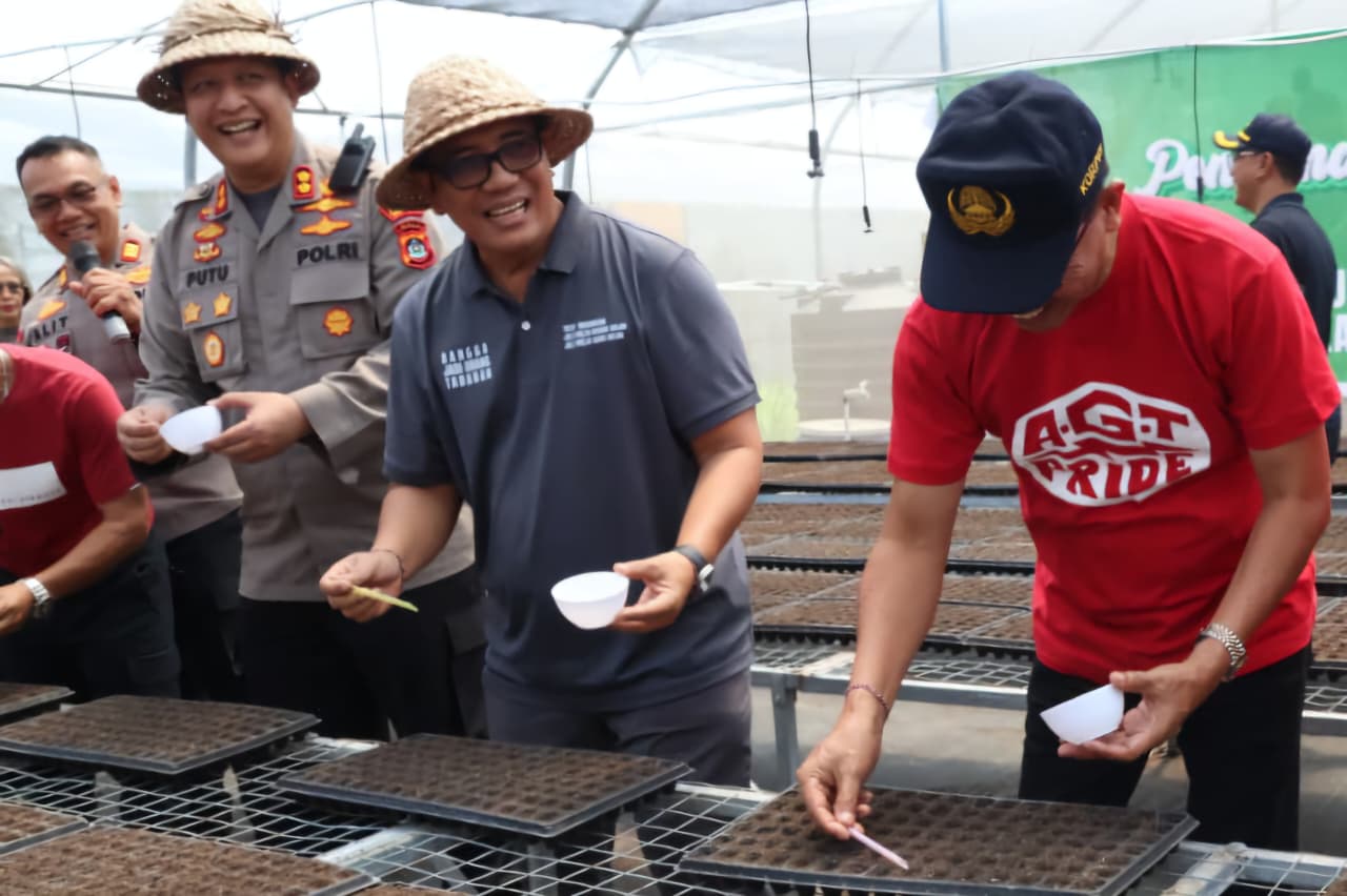 TABANAN, The East Indonesia – Bupati Tabanan, Dr. I Komang Gede Sanjaya, S.E., M.M., menghadiri kegiatan penyemaian bibit dalam rangka Program Green House Presisi Polres Tabanan yang digelar di Polsek Penebel, Jumat (17/10).