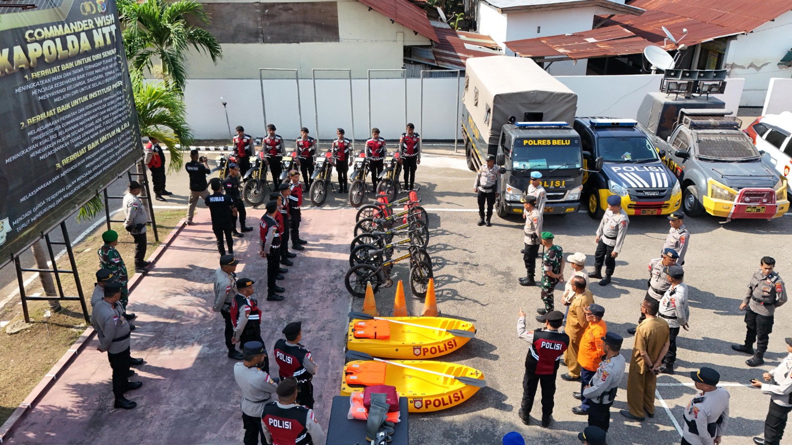 Kapolda NTT juga meminta untuk Mengoptimalkan kesiapan personel dan peralatan, termasuk fasilitas evakuasi, komunikasi, logistik, dan kesehatan serta Memprioritaskan penyelamatan jiwa (saving life first) dalam setiap langkah penanganan bencana.