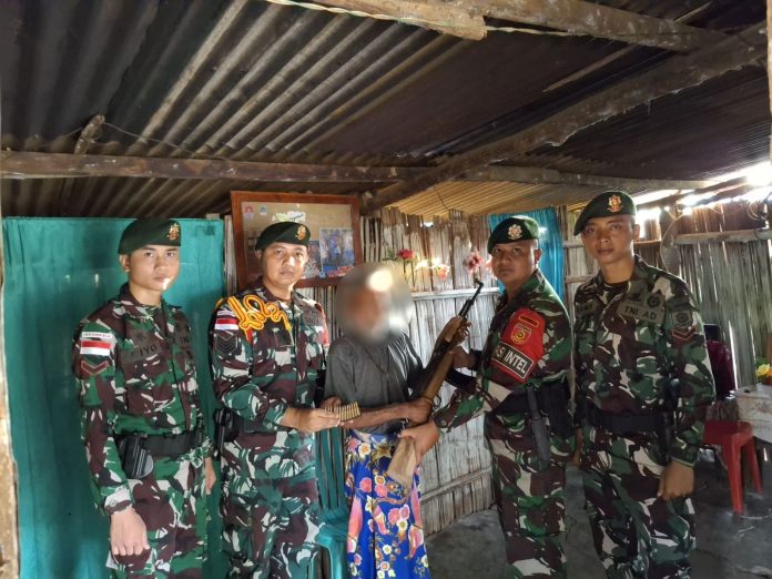 Seorang warga berinisial A (52) di Kelurahan Umanen, Kecamatan Atambua Barat dengan penuh kesadaran menyerahkan satu pucuk senjata jenis SKS beserta 13 butir munisi kaliber 7.62 mm kepada personel Satgas Yonarmed 12 Kostrad, pada Selasa, 4 November 2025.
