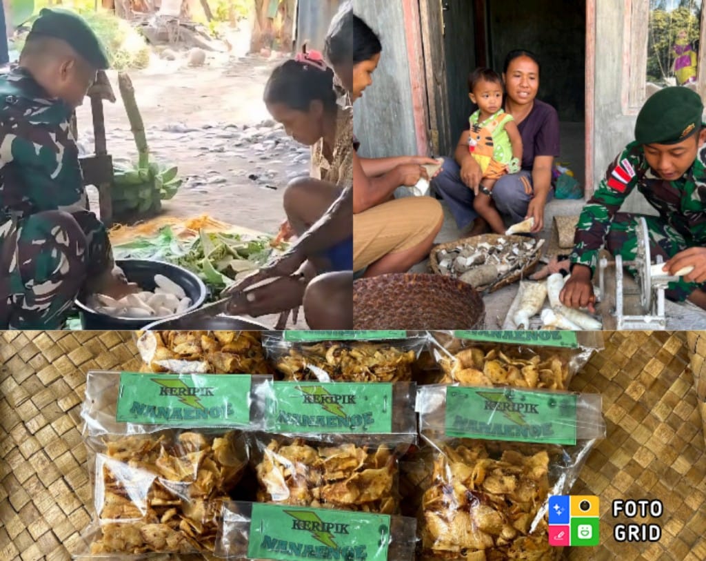 Selain itu, Satgas Pamtas Yonarmed 12 Kostrad Pos Nananoe melaksanakan kegiatan UMKM pembuatan kripik ubi bersama masyarakat Desa Nanaenoe, Kecamatan Nanaet Dua Besi, Kabupaten Belu.