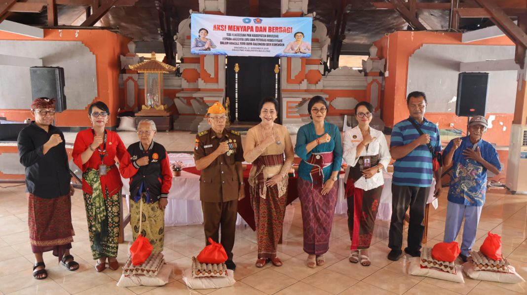 SINGARAJA, The East Indonesia – Tim Penggerak PKK Kabupaten Buleleng melaksanakan kegiatan Aksi Menyapa dan Berbagi kepada anggota Legiun Veteran Republik Indonesia (LVRI) serta petugas kebersihan, Kamis (27/11), bertempat di Wantilan Praja Winangun, Kantor Bupati Buleleng. Kegiatan ini digelar dalam rangka menyambut Hari Raya Kuningan sebagai wujud kepedulian dan penghargaan kepada para pejuang bangsa serta para garda terdepan penjaga kebersihan lingkungan.