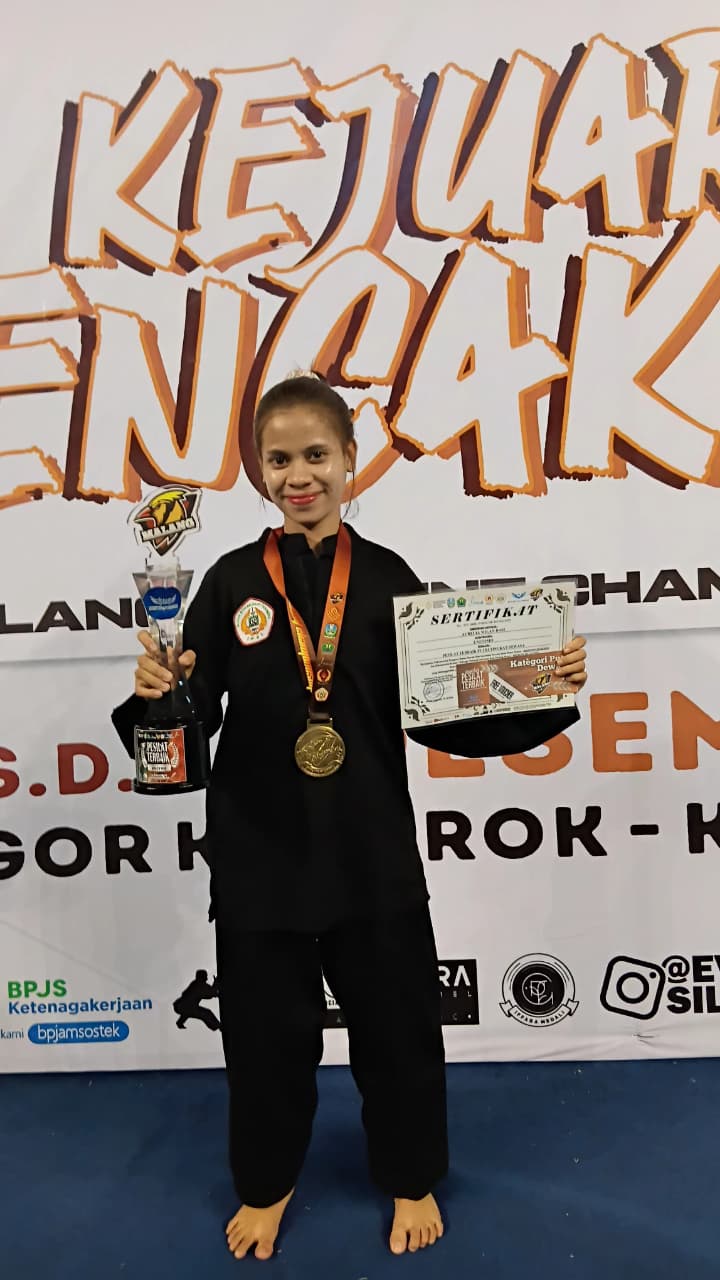 Tidak hanya mendapatkan Juara 1 tanding kelas bebas (under 45 kg) putri tingkat dewasa, Aurelia Milan Dasi berhasil memperoleh juga Predikat sebagai pesilat wanita terbaik dalam Kejuaraan Pencak Silat Malang Student Championship Tahun 2025.