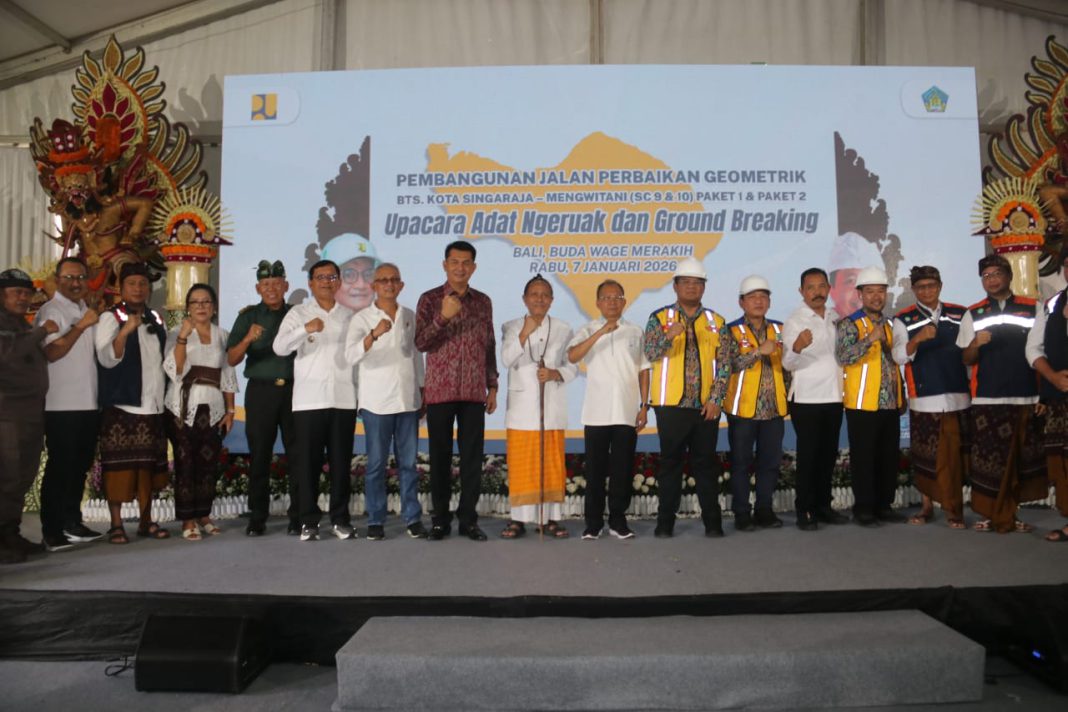 SINGARAJA, The East Indonesia – Proyek Shortcut Singaraja–Mengwitani dilanjutkan, kini titik 9 dan Titik 10 telah mulai dilaksanakan pembangunannya. Hal itu ditandai dengan Upacara Adat Ngeruak yang dilanjutkan dengan Ground Breaking pada Rabu, (7/1). Prosesi peletakan batu pertama dipimpin langsung oleh Gubernur Bali I Wayan Koster dan dihadiri sejumlah pejabat pusat dan daerah.