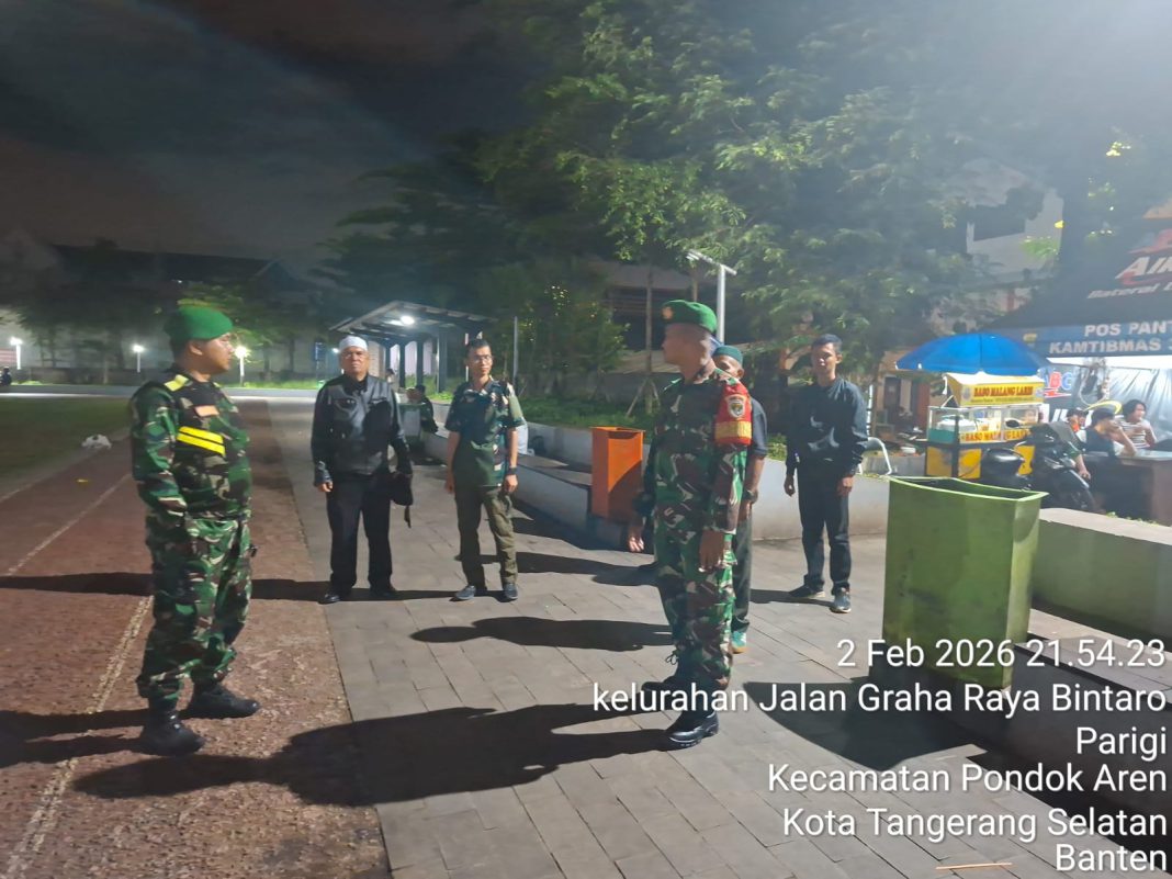 TANGERANG, The East Indonesia – Guna menjaga ketat keamanan, ketertiban masyarakat (Kamtibmas) di wilayah seputaran Kota Tangerang dan Kota Tangsel, anggota Babinsa Kiramil 06 Cibodas dan Koramil 07 Pondok Aren Kodim 0506/Tgr bersatu melakukan patroli dan kegiatan satkamling untuk jaga malam, agar warga merasa tenang dan nyaman.